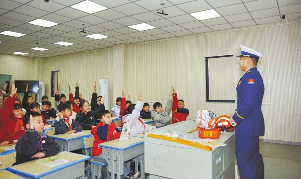 2月18日,资兴市第三完全小学,学生积极参与互动问答。连日来,资兴市消防救援大队深入辖区中小学,开设生动有趣、实用性强的消防科普教育课堂,进一步提高师生消防安全意识和自防自救能力。