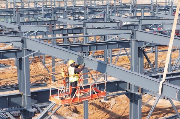 2月27日,娄底经开区电力成套设备制造标准厂房建设项目现场,工人在加紧作业。建成投产后,将大幅提高电力设备的制造能力和技术水平,推动当地“三电”产业的技术创新和产业升级,促进当地经济发展。