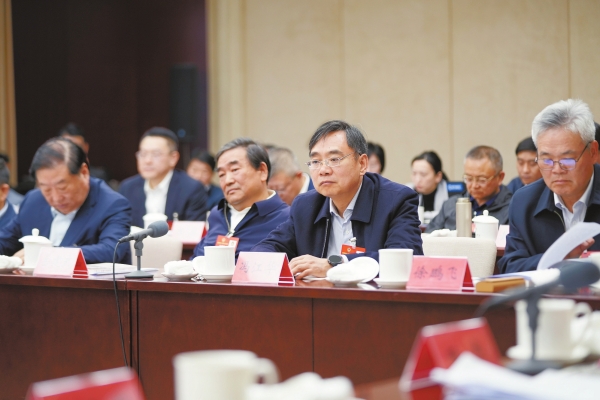 3月7日,住湘全国政协委员冯江华(前排右二)在联组会议上发言。