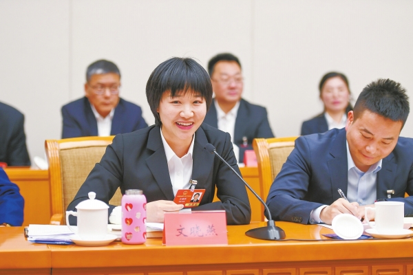 3月7日,文晓燕代表在湖南代表团分组会议上发言。