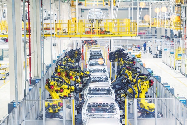 3月13日,长沙比亚迪雨花基地焊装工厂,智能化生产线上的机械臂伸缩旋转,有条不紊地完成焊接工作。长沙比亚迪不断探索科技成果孵化、转化,助推高质量发展。