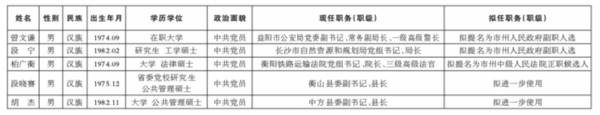 为了加强对干部选拔工作的监督,提高识别和任用干部的准确程度,现对省委常委会会议研究决定的下列拟任人选进行任前公示: