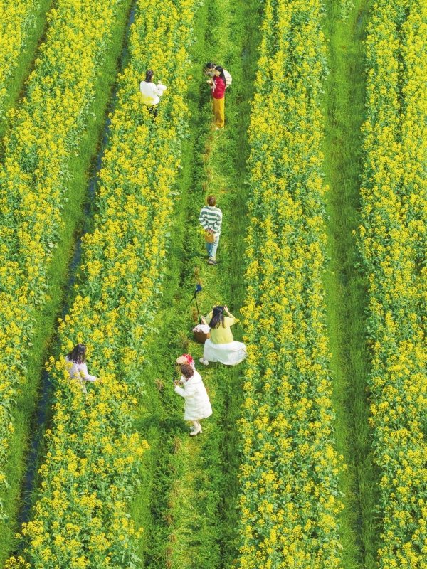 3月16日,长沙市望城区茶亭镇的12000亩油菜花竞相盛放,游客在赏花游玩。近日,第五届茶亭花海文化艺术季活动举行,吸引众多游客前来踏青赏花。