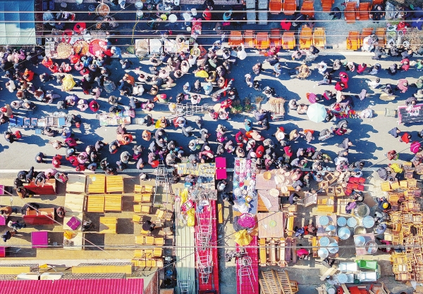3月20日,衡东县草市镇热闹的“赶分社”现场。春分节气,该镇一年一度的“赶分社”如期进行,来自周边县乡的群众纷纷赶来开展农具、耕牛、种苗、中药材、竹木器等春耕物资和生活用品的交易。“赶分社”即春分赶集,是当地的一大特色,可追溯到明清时期。