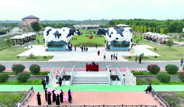 西湖牧业小镇依靠农牧业,从一根草到一杯奶,产业链不断延伸,逐步形成“种——养——加——销——游——创”六位一体的发展格局。通过整合牧草研发、奶牛养殖、牧草种植、乳品加工、科普教育、观光体验各个环节,高标准、高质量建设牧业小镇,先后获评国家农业产业强镇、省级农业特色小镇。
