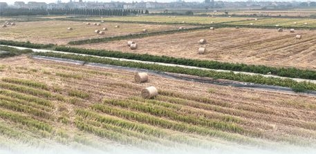 在湖南德人生物科技有限公司的生产线内,大型的秸秆回收加工机械设备,正将收割回来的秸秆粉碎、打包,转化为牲畜青贮饲料包,供应全国各地的牲畜饲养场。