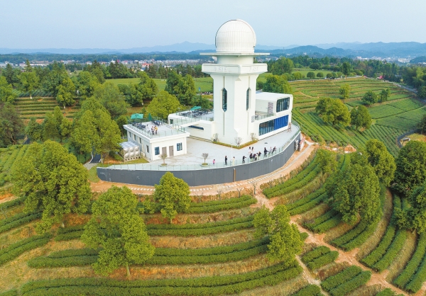 3月22日,不少游客在长沙县金井镇金井天文台游玩,在茶园中体验天文观测的乐趣。23日,该天文台正式向公众开放。天文台配备了中南五省对公众开放口径最大的天文望远镜,将满足科研、科普、游学等多方面需求。目前天文台建设了天文展厅、“星空茶馆”等,未来还将配套建设太空舱酒店、茶园民宿、露营基地等项目,为游客提供更丰富的文旅体验。