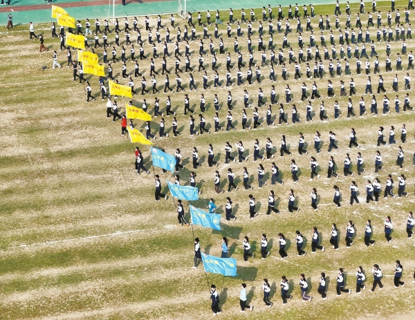 4月2日,通道侗族自治县芙蓉中学,学生在课间跑操。今年,该县引导各中小学校全面开展课间跑、跳绳、球类等丰富多样的体育活动,助力学生健康成长。