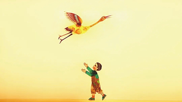 皮影剧《我要飞翔》由湖南木偶皮影保护传承中心创排,讲述了受伤的男孩在康复路上与一只受伤的丹顶鹤彼此治愈的温情故事。随着丹顶鹤的康复,孩子却产生了依赖心理,舍不得丹顶鹤飞向天空,但最终身体和心灵都得到疗愈的孩子选择了放飞丹顶鹤,阐释了自由和爱是万物共生的基础。这是一个温情、以小见大的故事,也是儿童题材常有的主题。