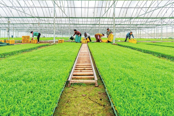 4月7日,东安县芦洪市镇西江桥村,农民在移机插秧苗。