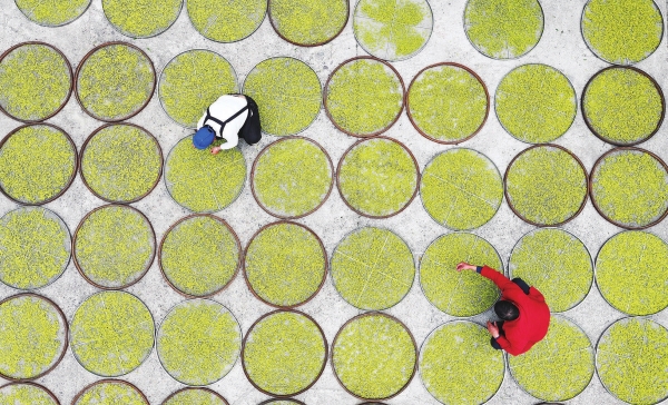 4月7日,双牌县上梧江瑶族乡盘家村云台山生态有机茶园,茶农在加工春茶,供应市场。