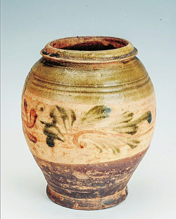 衡山窑所用瓷土大多就地取材,胎体烧结后大多呈赭灰和猪肝色,部分瓦灰、个别器物中瓷胎夹砂。譬如衡东大源窑,大多取用当地河滩沉积土和普通页岩土做坯料,经过1200摄氏度左右的高温焙烧,胎质致密、细腻、坚硬,扣之有金属之声。加之釉色清亮多变,釉胎结合不易脱落,纹饰也很漂亮,而被定为高温瓷器。衡山窑的装饰风格,是在素胎上施一层白色的化妆土。然后用多色彩釉绘花,彩釉上不再罩釉,一次入窑烧成。