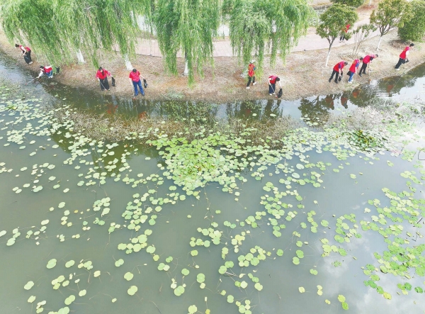4月22日,道县绍基公园,志愿者在拾捡垃圾。当天是世界地球日,道县团县委组织志愿者开展“河小青”环保志愿活动,用实际行动保护环境,守护美丽家园。