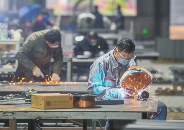 4月24日,道县高新技术产业开发区湖南岚鸿金属制造有限公司,工人在金属制品生产线上作业。近年来,该县全面规范涉企行政执法行为,创新涉企行政检查监督方式,推广“监督+服务”模式,为企业松绑减负,持续优化营商环境,推动民营经济高质量发展。