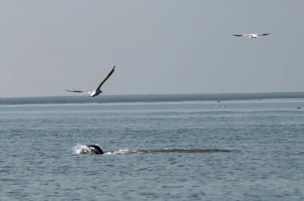 绿岸旁,浅草将将没过脚踝,微风拂过人余高的芦苇荡,带起阵阵窸窣;江面上,江豚不时鱼跃而起,水花点落在低飞的候鸟群,啼鸣清脆悦耳。
