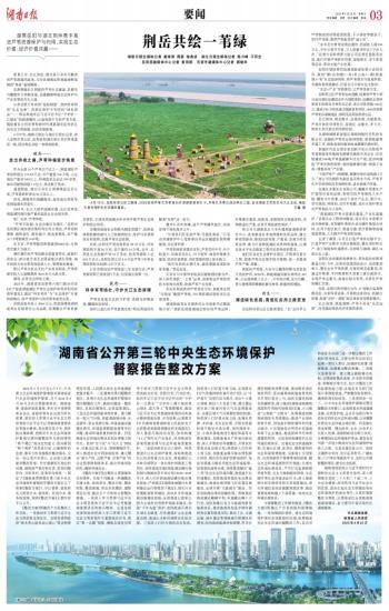 湖南省公开第三轮中央生态环境保护督察报告整改方案