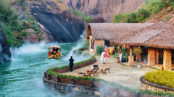 乘竹筏划过翠江,看丹霞赤壁倒映碧波。携三两好友,沿着狭长的阶梯行走在陡峭的山岭,天际山环水绕,尽收眼底。一步一景,都是岁月的痕迹,大自然的鬼斧神工。