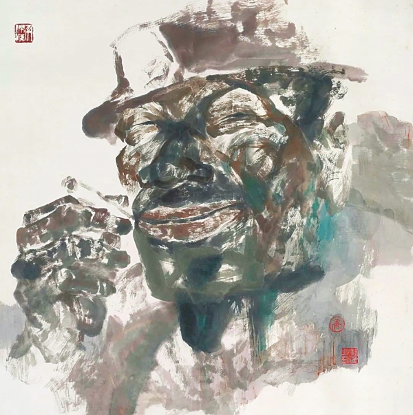 源自矿井深处的人文之光。康移风的艺术之路始于湖南涟邵矿务局的矿工时期。“因了那一张张沾满煤尘的脸,那汗迹斑斑的窑衣,那一个个动人的乃至催人泪下的矿工故事,我的情感体验迫使着笔触要伸进浓浓的水墨世界里。”1974年,康移风画了一幅矿工题材作品参加湖南省首届优秀美术作品展。从此,他的艺术世界便与煤矿工人紧紧联系在一起。下井、劳动、小憩、收工……这些采煤工人的日常生活瞬间成为他笔下最美的风景。2005年在中国美术馆展出的《我的弟兄》系列,以刀劈斧砍般的笔触刻画出矿工群体的钢铁意志。画面中黝黑的面孔、沾满煤灰的工装、如雕塑般坚实的肌肉线条,构成了中国美术史上罕见的劳动者群像。这些作品拒绝浪漫化的英雄叙事,而是以“方直厚重”的笔墨语言,融合西方立体构成与传统线描,真实呈现矿工用生命博取生存空间的生存状态。中国美术馆收藏的《憨》与《我的弟兄》,标志着“煤矿工人”形象首次以主体姿态进入国家艺术殿堂,完成了从“煤黑子”到“黑色脊梁”的审美正名。