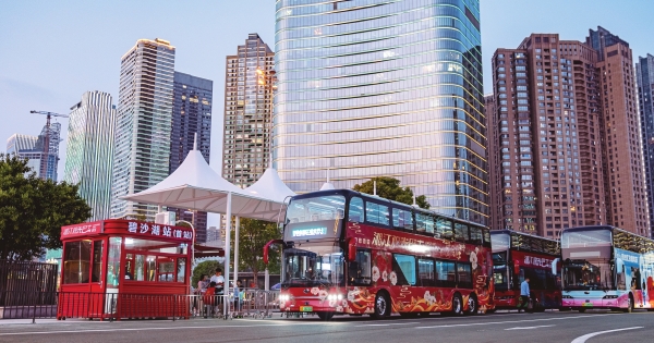 5月5日,长沙市天心区碧沙湖停车场,湘江观光巴士即将发车。“五一”假期,湖南文旅市场火热。