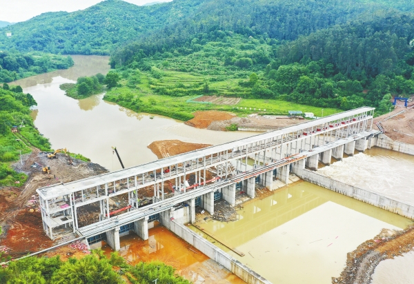5月8日,嘉禾县上坪水闸工程现场,工人在进行施工。该项目是以灌溉为主、兼顾防洪和水力发电等效益的综合性重点水利工程,建成后可有效提高河道防洪、农田灌溉、发电排灌、耕地保护能力,为农业丰收打下坚实基础。