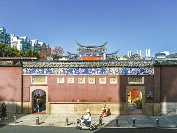 于家,林则徐的精神至今仍在启益后人。福州中山路19号,还坐落着一处林公纪念馆,名为“林则徐出生地纪念馆”。1785年,林则徐就出生在这里,今年正是其诞辰240周年。“林则徐出生地”六个黑底黄字镶嵌在黛瓦白墙间,墙后一株遒劲的榕树,枝叶盛展,尽显“一木成林”的气势。门口巨石上,也镌刻着“海纳百川”和“壁立千仞”的字样,展厅里还展陈着林则徐的《十无益》和《观操守》。“这是先祖告诫子孙——胸怀可比海天,心志当如绝壁。”林则徐第六代后裔林祝光亦很欣赏这副楹联,她说:“这些家训与箴言,都是先祖总结并践行的修身准则,对后人启益良多。”