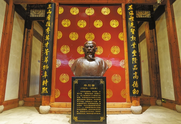 不同于一般纪念馆的高大门楼,林则徐纪念馆入口仅有两扇小拱门。上书“中兴宗衮”“左海伟人”。福州因东临东海,被称“左海”;纪念馆前身,是林氏后裔及门人集资兴建的“林文忠公祠”。“两扇拱门、两处题字,正契合纪念馆的由来,也彰显林则徐的崇高声誉。”孙汉生感叹,于国、于家、于当今时代,林公都是值得一读再读的伟大人物!