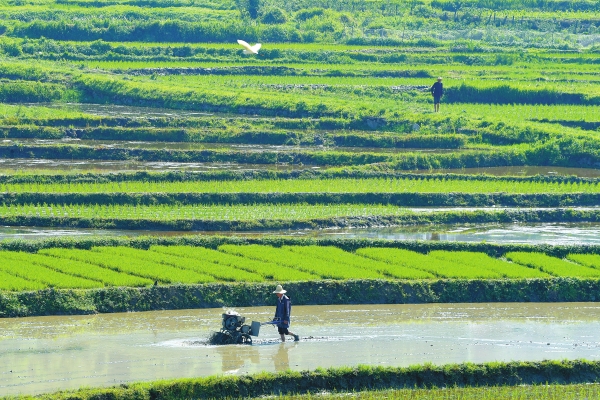 5月12日,双峰县井字镇石奇村,农民驾驶微耕机耕田。时下,该县的一季稻进入插秧季,当地农民紧抓农时整地、插秧。近年来,双峰县在稳定种植双季稻面积的同时,在现有一季稻区着力推广再生稻,助力农民增产增收。