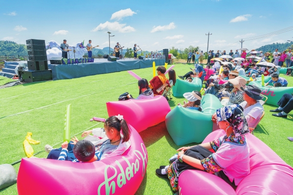 5月11日,吉首市己略乡夯坨村,歌手在云端苗寨纵情演唱。5月10日至11日,该村举办“2025云上夯坨非遗乡村音乐会”。今年来,夯坨村在“深山乐队”的引流下,以音乐圈粉,以美食留客,接待游客4万余人次,农家乐、云上集市等经营收入达200余万元。