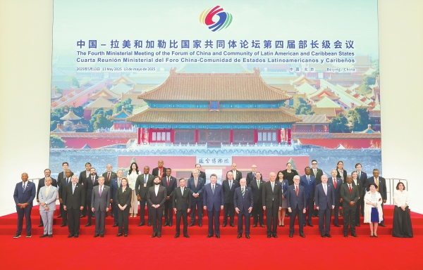 初夏时节,生机盎然。国家会议中心内,中国、拉美和加勒比国家国旗以及有关地区组织旗帜交相辉映。