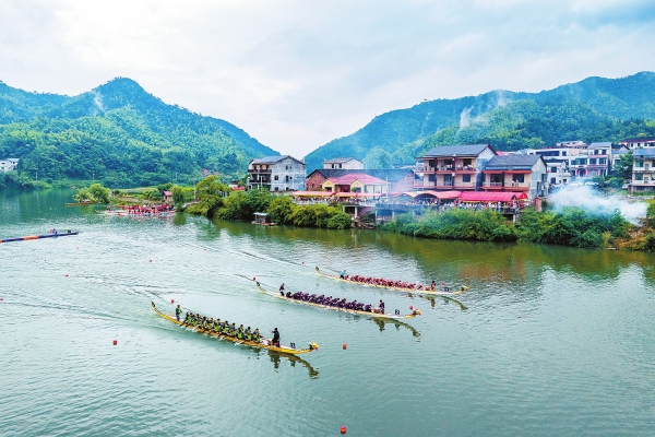 5月18日,龙舟在测水河上竞渡。当天,双峰县梓门桥镇街埠头村举行“文正学校杯”龙舟邀请赛,来自娄底市的12支龙舟队激情竞速,为观众献上一场精彩的龙舟赛事,喜迎端午。