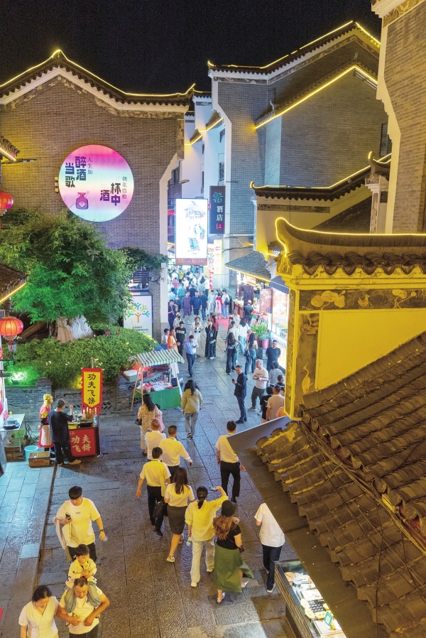 5月25日晚,游客在岳阳市汴河街游玩。当天,第四届湖南旅发大会在岳阳开幕,推出的系列活动吸引了众多游客。