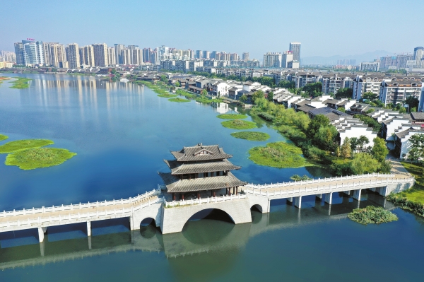 如果说沅澧二水是常德的动脉、柳叶湖是心脏,那么穿紫河便是缠绕在城市腰间的翡翠项链。这条全长17.3公里的人工河,前身是古代护城河与多条自然溪流聚集而成,一度沦为臭水沟。十几年前,常德启动穿紫河综合治理工程,并且在全国率先植入“海绵城市”建设理念。常德人凭着一股独有的干劲和巧劲,把美好蓝图变成生动现实,穿紫河水生态系统从昨天的“龙须沟”蝶变为“玉带河”。十二座风格各异的桥梁横跨其上,白昼赏心悦目,夜晚流光溢彩,宛如威尼斯水城的东方版本。