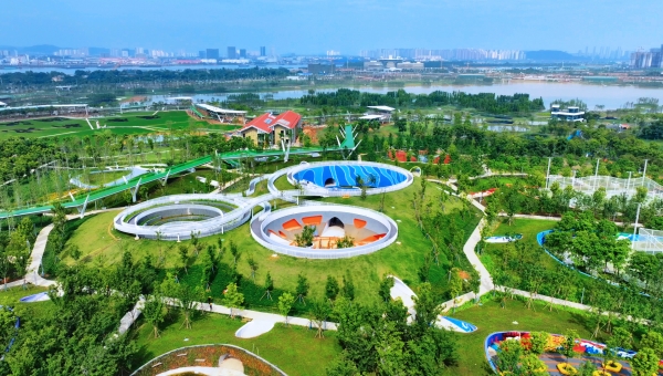 如今走进公园,只见大大小小的圆形树岛临水而建,岛上高大的水杉、低矮的芦苇和旱伞草等植被错落有致,被誉为“环境监测师”的白鹭们在这里成群栖息,或翩跹起舞,或悠然觅食,与碧绿的湖水相映成趣。以“开天窗”方式保留的近400亩耕地,打造休闲农园、艺术农园和社区农园,种植水稻近200亩,游客们与有趣的互动装置打卡合影,感受“人在公园走,鸟在林中飞,满目田园景”的独特体验。儿童乐园、体育乐园、拓展乐园、研学乐园、萌宠乐园五大乐园中,田野篮球场、田野足球场、攀爬网、滑板场、滑梯等众多无动力娱乐项目让大小朋友都乐在其中。大泽湖成为一座集生态涵养、智慧管理、科普教育、运动休闲于一体的生态空间、市政公园。