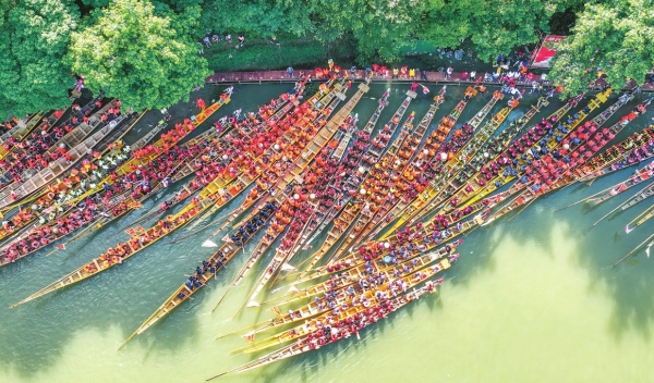 道州龙船赛,为什么令人心醉神迷呢?因为龙船有“文化”!道州龙船见证了万年稻作农业的兴盛,浸润了屈原楚韵的风骚,融入了周敦颐理学文化的灵性,沾染了书法大师何绍基的巨腕风骨……2006年,道州龙船习俗被列入湖南省非遗代表性项目名录,并在2021年被列入国家级非遗代表性项目名录。2024年,道州龙船赛团队成功挑战吉尼斯世界纪录。