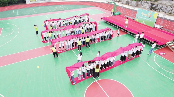 5月的阳光洒在永州新田县苦志育才 学校的操场上,此起彼伏的“123……”口号声中,孩子们如同编队前行的船队,正同舟共济,驶向彼岸。