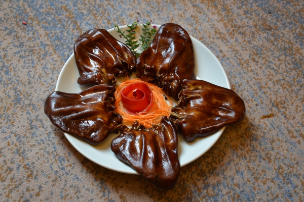 武冈被誉为“中国卤菜之都”,武冈卤菜历史源远流长,曾是明、清两代皇家贡品。武冈卤菜采用20多味名贵药材,用卤鼎熬制成卤水,将原料反复浸煮、凉干而成。武冈卤菜成品色美味香,口感独特,回味无穷,且具有健胃开脾等功效。
