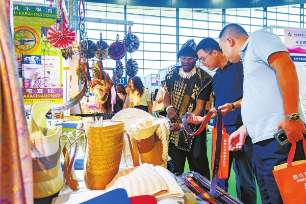 6月13日,长沙国际会展中心,游客在中非时尚产业馆挑选特色产品。