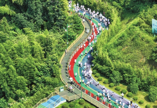 本次“走娃”线路巧妙融合自然野趣与文化底蕴。全程5公里,时而攀上缓坡,感受竹海翻涌的壮阔;时而漫步平缓小道,细嗅泥土与竹香的清新。选手们身着参赛服,穿行于翠竹之间。来自益阳市赫山区龙州小学的王奕陈,获得中将组第一名。他说:“竹海的风景很美,空气清新。我玩得很开心。”