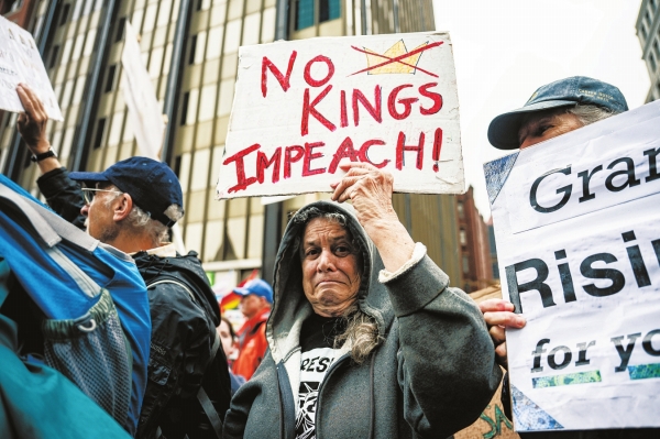 6月14日,在美国马萨诸塞州波士顿,人们参加 “不要国王”抗议活动。