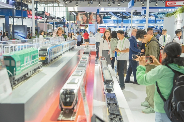 7月17日,观众在中国中车展位前参观。7月16日至20日,第三届中国国际供应链促进博览会在北京举办。21家湖南企业参加本次链博会,涵盖智能汽车链、清洁能源链、先进制造链、绿色农业链和健康生活链。