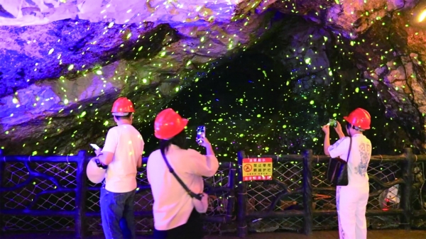 上堡晶矿矿山公园被誉为“竹海三绝”之一,是世界著名的萤石和共生矿物晶体的发源地。景区利用原有矿道,改造约2公里轨道,定制观光小火车,打造出集观光、研学、探险于一体的立体游览线。“我们打造沉浸式井下探秘体验区,让游客感受原生态采矿场景,还可以学习到很多矿石知识,游客们都称赞这里是‘活的博物馆’。”蔡伦竹海景区运营管理处上堡晶矿工作人员吴琼介绍。