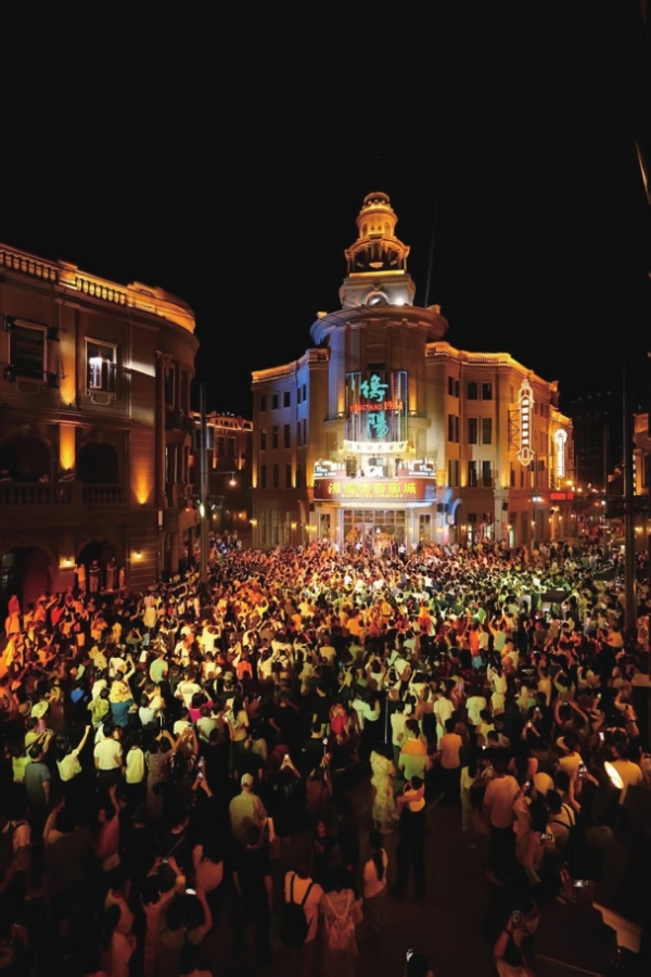 酉时的“时光之城·1944”,星光与灯火交织。浑厚的交响乐穿过“时光隧道”,老衡阳的市井画卷在眼前铺展:报童递来“旧报纸”,“号外!号外!”的吆喝声清脆响亮;珠光宝气的“富太太”们坐着“黄包车”在青石板路上穿梭;铁炉门茶馆里飘出传统茶香;舞者蹁跹、武者挥拳踢腿,360°的行进式演艺让游客瞬间入戏,整条街化作活态舞台。最是那旅拍妆造,在应景的“民国街头”,女人们不论高矮胖瘦、年长年少,全部摇身变成了窈窕、贵气的“民国明星”,成为街区一道靓丽的风景线。