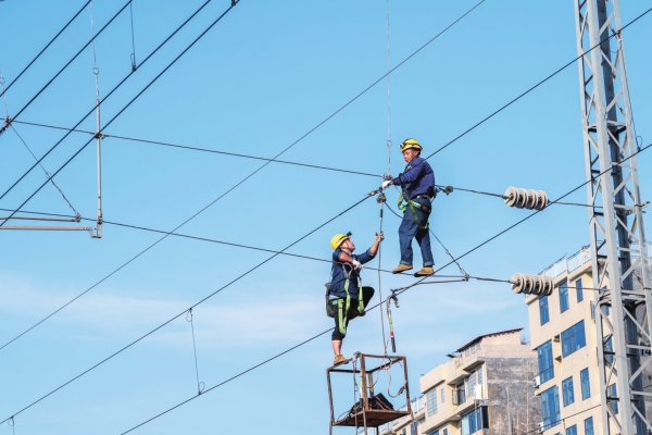 7月31日,广铁集团长沙供电段娄底维修车间对沪昆线娄底枢纽牵引线供电设备进行90分钟大规模综合整治。此次作业为枢纽首次全链条施工,重点整治牵引供电设备病害,全力保障高温天气铁路运输安全。
