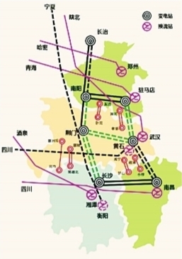 目前,湖南共建成跨省跨区特高压通道4条。两回落点特高压直流分别为此次投运的“宁电入湘”工程和2017年投运的祁韶直流,分别从宁夏中卫和甘肃酒泉送入湖南;两回特高压交流为荆潇线与潇江线,分别与湖北、江西电网联络。除特高压通道外,湖南电网还通过葛岗线等3回500千伏线路与湖北电网联络,并具备南网鲤鱼江、大龙电厂灵活转供湖南的条件。