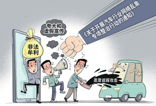 工业和信息化部、中央社会工作部、中央网信办、国家发展改革委、公安部、市场监管总局六部门近日联合印发《关于开展汽车行业网络乱象专项整治行动的通知》,决定在全国范围内开展为期3个月的专项整治行动。