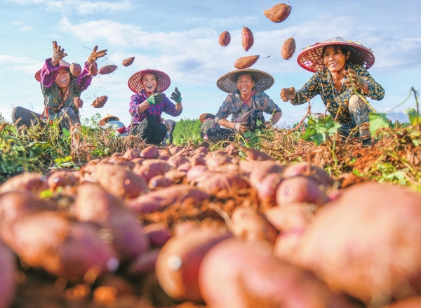 9月11日,道县祥霖铺镇秀水洞村,村民在采收紫薯。