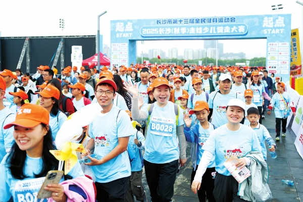 湖南日报9月21日讯(全媒体记者 蔡矜宜)今天上午,2025长沙(秋季)走娃少儿健走大赛鸣枪开走,数千人组成的“遛娃大部队”沿浏阳河和湘江前行,开启一场12公里的踏秋暴走。