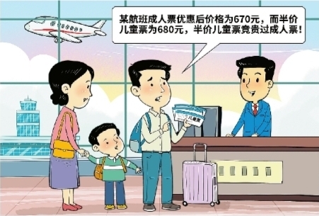 社会上关于儿童机票贵过成人票的质疑一直都存在,却迟迟不见相关部门有所行动。近期又有家长反映,购买部分航班机票时,半价儿童票仍贵过成人票。