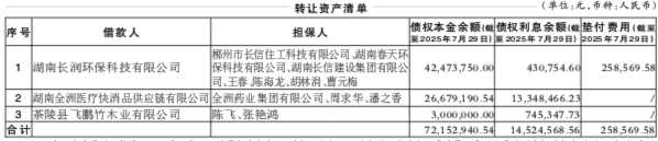 注:1、本公告清单列示暂计至2025年7月29日的贷款本金余额,借款人和担保人应支付给长沙湘江资产管理有限公司的利息按借款合同、担保合同、中国人民银行的有关规定以及法院裁判文书计算。2、若债务人、担保人因各种原因更名、改制、歇业、吊销营业执照或丧失民事主体资格的,请相关承债主体及/或清算主体代为履行义务或履行清算责任。3、清单中“担保人”包括保证人、抵押人、出质人,担保人的担保范围以签署的合同等法律文件约定为准。如公告中债务人、合同编号、债权金额、担保人等信息与事实不符的,以签署的合同等法律文件约定为准。