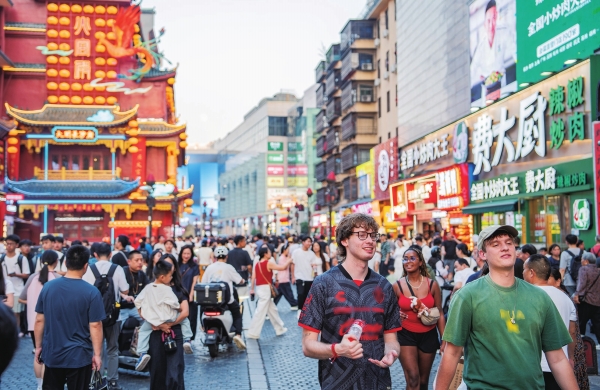 10月5日,长沙市坡子街人潮涌动,处处洋溢着浓厚的节日氛围。双节长假以来,长沙持续迎来客流高峰。湖南日报全媒体记者 李健 摄